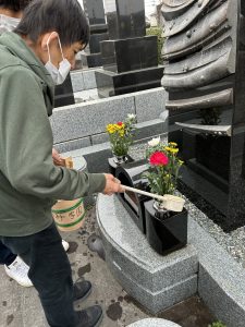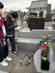 浄蓮寺にあります、9名が眠っているお墓に行き、綺麗に掃除をしてお花と線香を供えて手を合わせてきました。