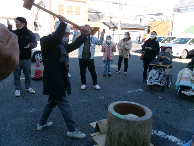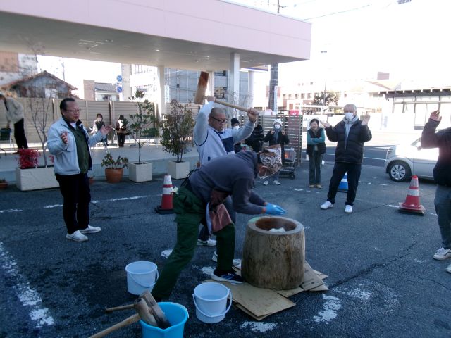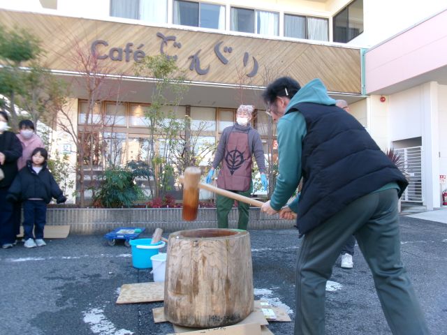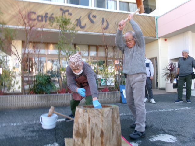 12月27日(土)、喫茶どんぐりの駐車場でもちつきを行いました。