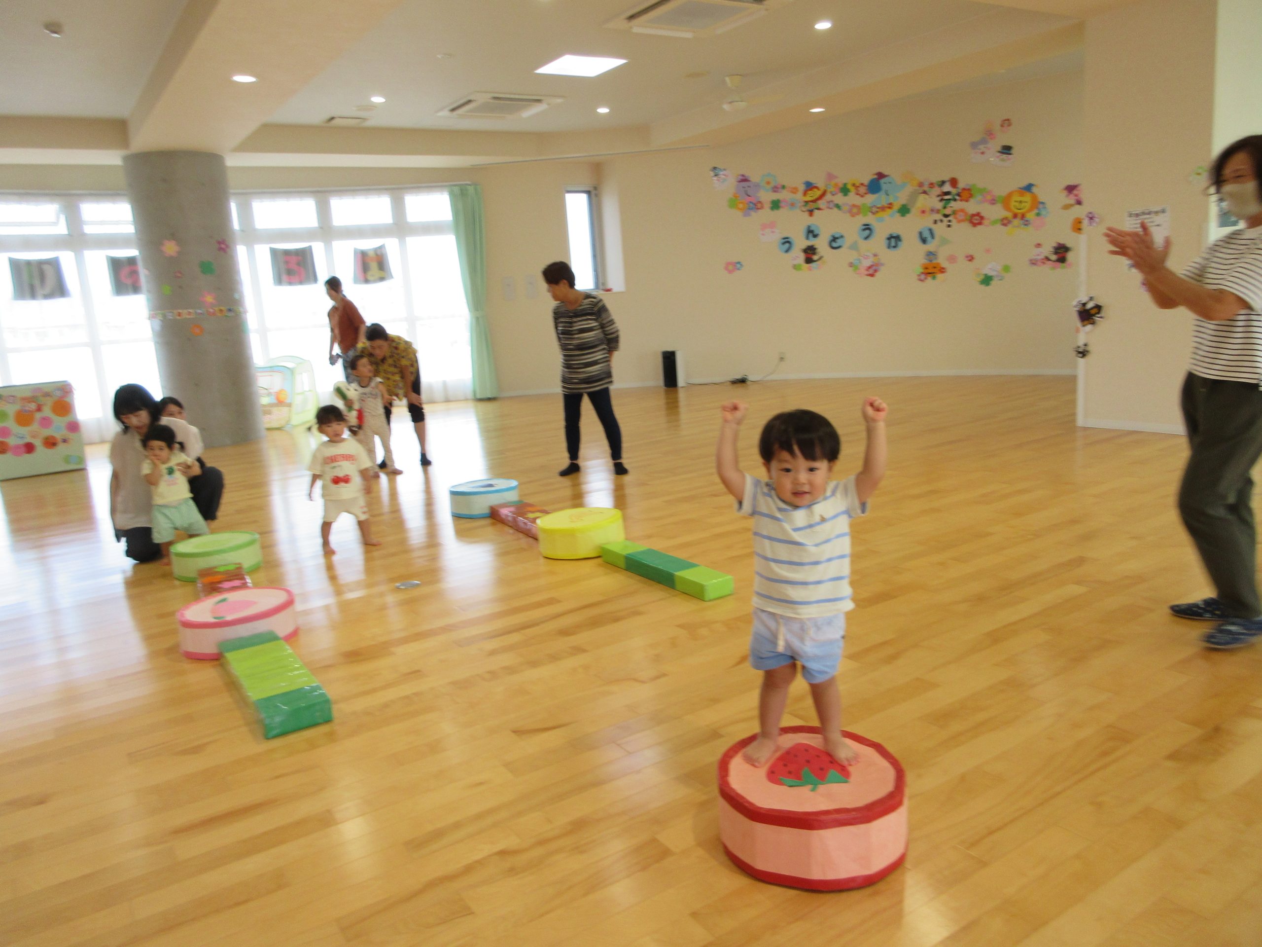 サンサン体操から始まり、かけっこ、ボックスカーでGO,一本橋渡ろう、ぬい活入門編、バルーンで踊ろう、最後にパン食い競争で参加賞をゲットしました