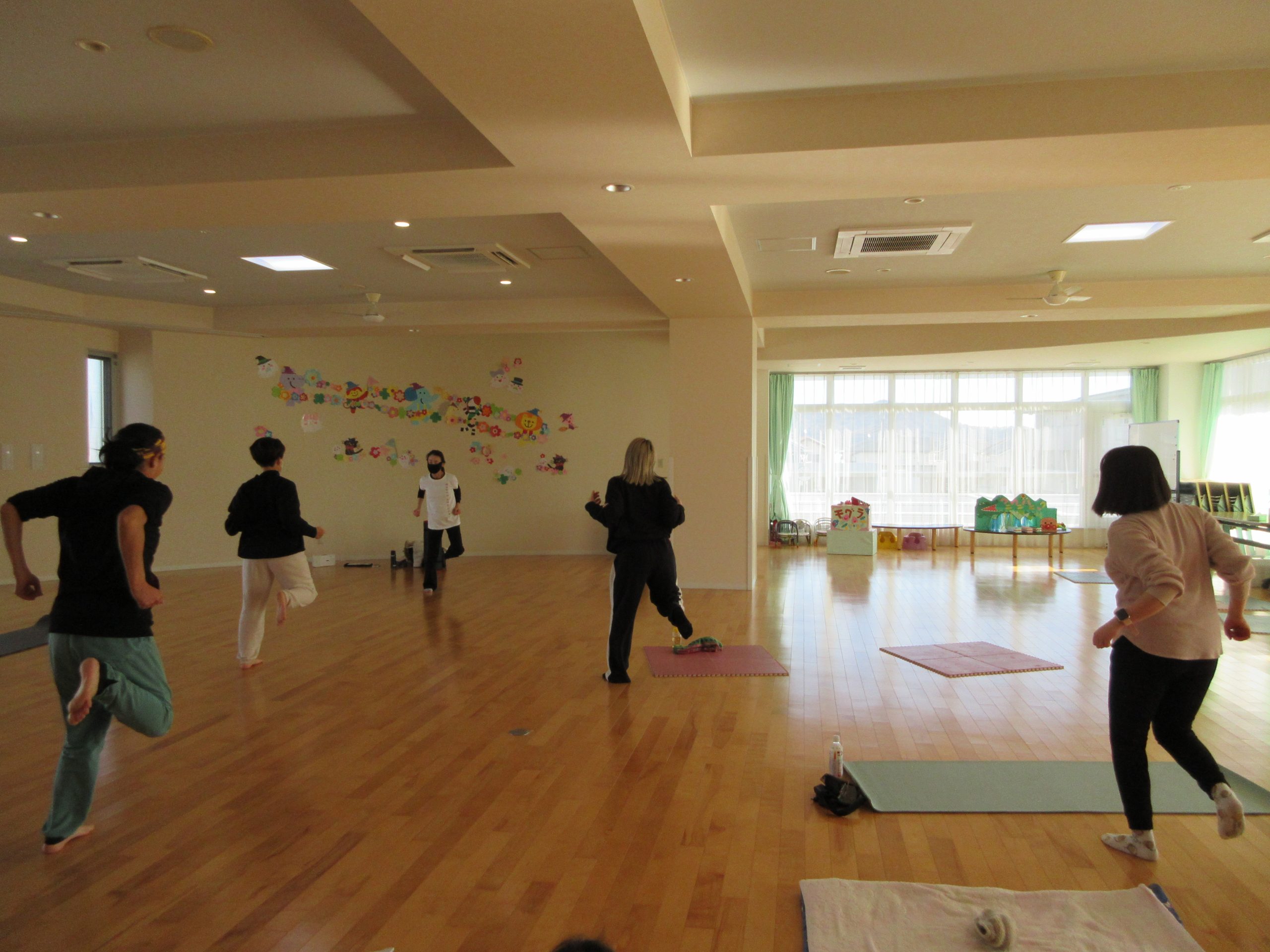 インフルエンザでお休みの人もいましたが、5人の参加者とできました。リピーターさんもいますが、今回ほんとに初めてのママもいました。動きについていけないと言いながらも楽しく曲に乗って体を動かすのは、楽しかったようです。清々しいお顔で汗をぬぐっていました。