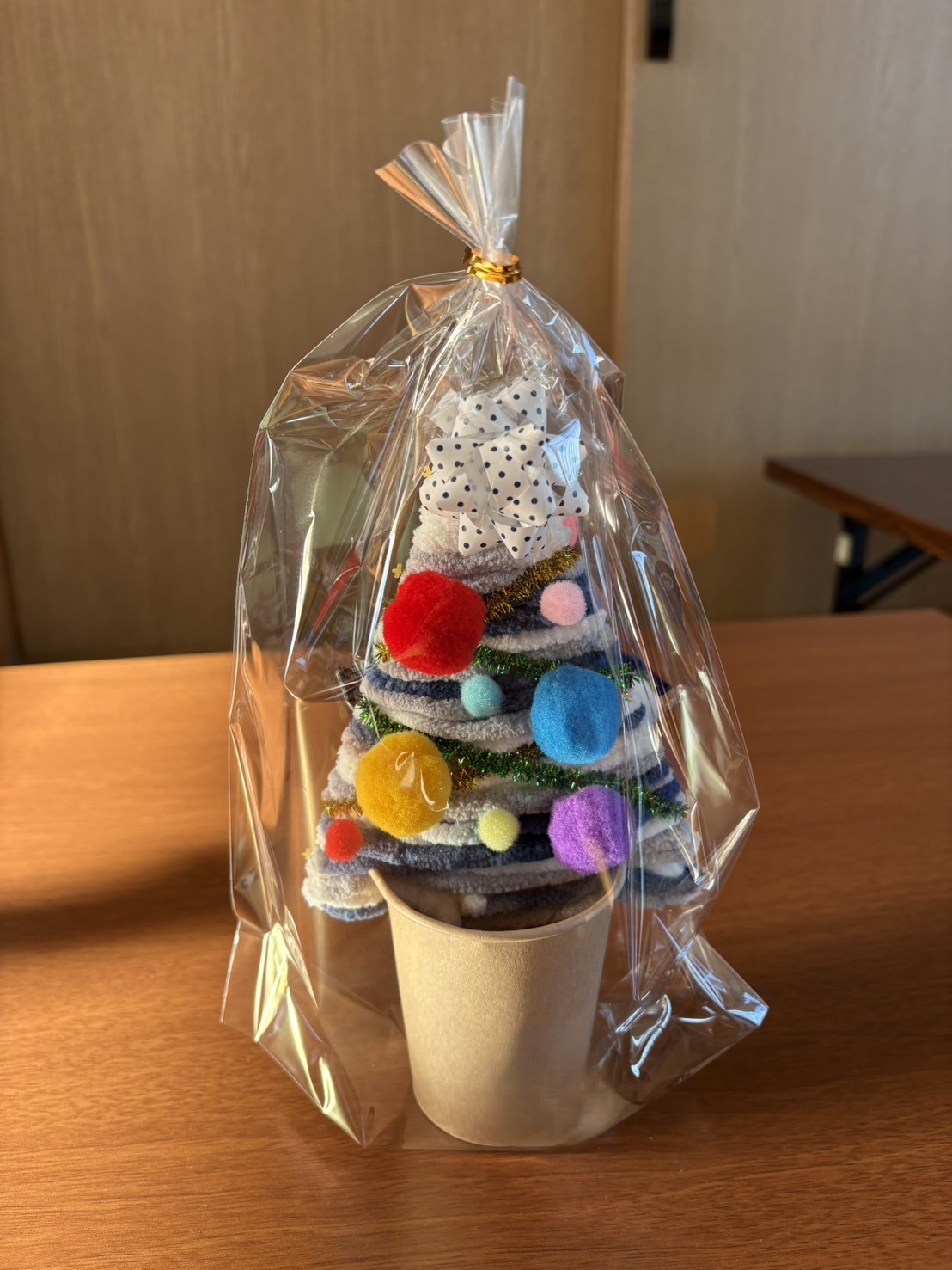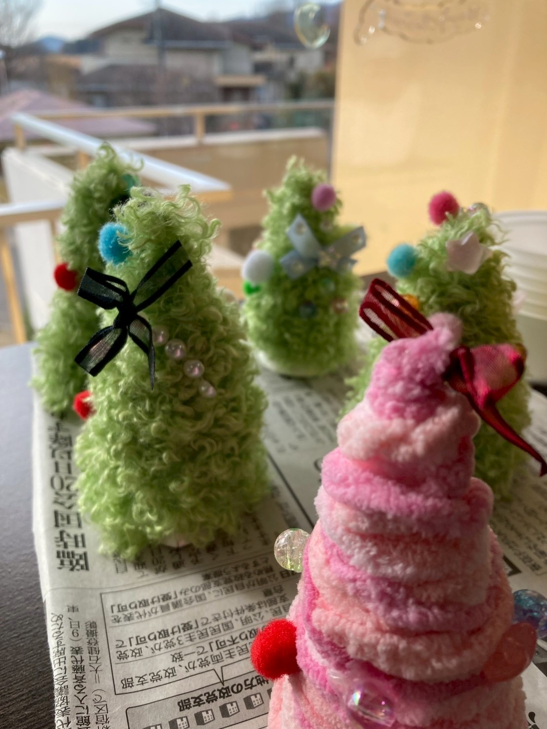 ゆうきグループでは、毛糸に飾り付けをしてクリスマスツリーを作りました!