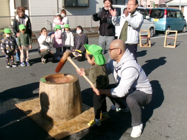 ついたおもちはあんこ、きなこ、お雑煮にし、昼食でおいしくいただきました