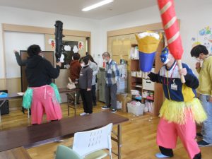 2月3日(火)、フロム浅沼の節分に鬼が乱入!なんと美味しそうなソフトクリームのこん棒を持ってやって来ました。どこかで見たことのあるユニフォーム、皆さんちょっと不思議そうな顔をしながらも、楽しそうな笑顔で溢れていました。今回の節分は『イオン社会福祉基金』の協賛をいただき、『ミニストップ佐野馬門店』の2名のスタッフさんが来て下さり、美味しいおやつのお土産も頂戴し、みんなで楽しい時間を過ごすことが出来ました。『ミニストップ佐野馬門店』の皆様、ありがとうございました!!