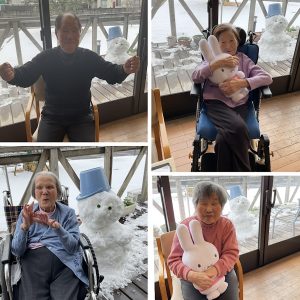 利用者さんにもお手伝いしていただき可愛い雪だるまができました!