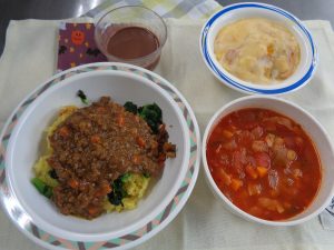 この日の昼食は、ハロウィーンの特別メニュー。