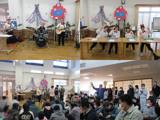 ワクワクしますね。デイルームでは創作の時間にツリーやポインセチアを作りました。職員がクリスマス会の演奏の練をしていると、とび入り参加してくる方がいらっしゃったりと、準備もにぎやかでした。